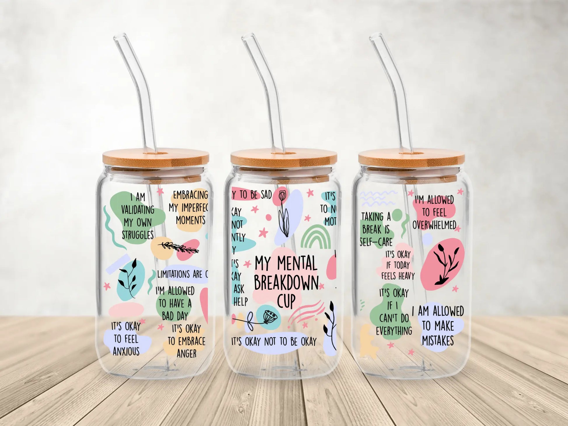My Mental Breakdown Cup – 473ml (16oz) Glass Can Tumbler with Bamboo Lid & Straw