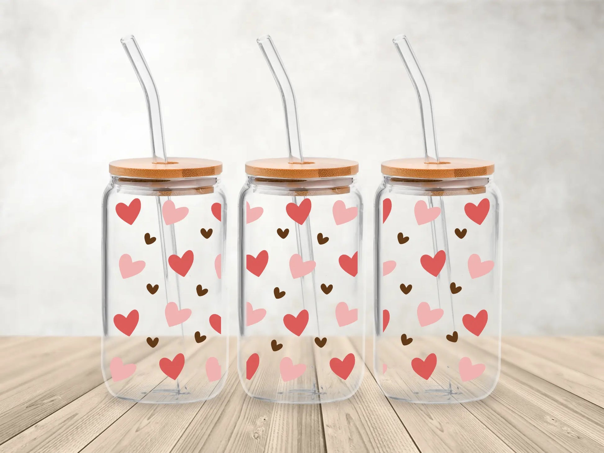 Heart Full of Love – 473ml (16oz) Glass Can Tumbler with Bamboo Lid & Straw