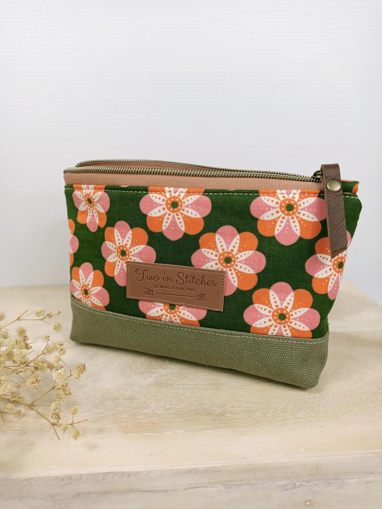 Retro Floral Zipper Pouch – Spill Proof Vinyl-Lined Toiletry & Makeup Bag